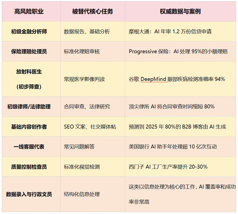 这些岗位的共同特点是工作流程清晰、产出可衡量、处理规则相对固定。AI正在这些领域实现“超人类”的效率和准确性。