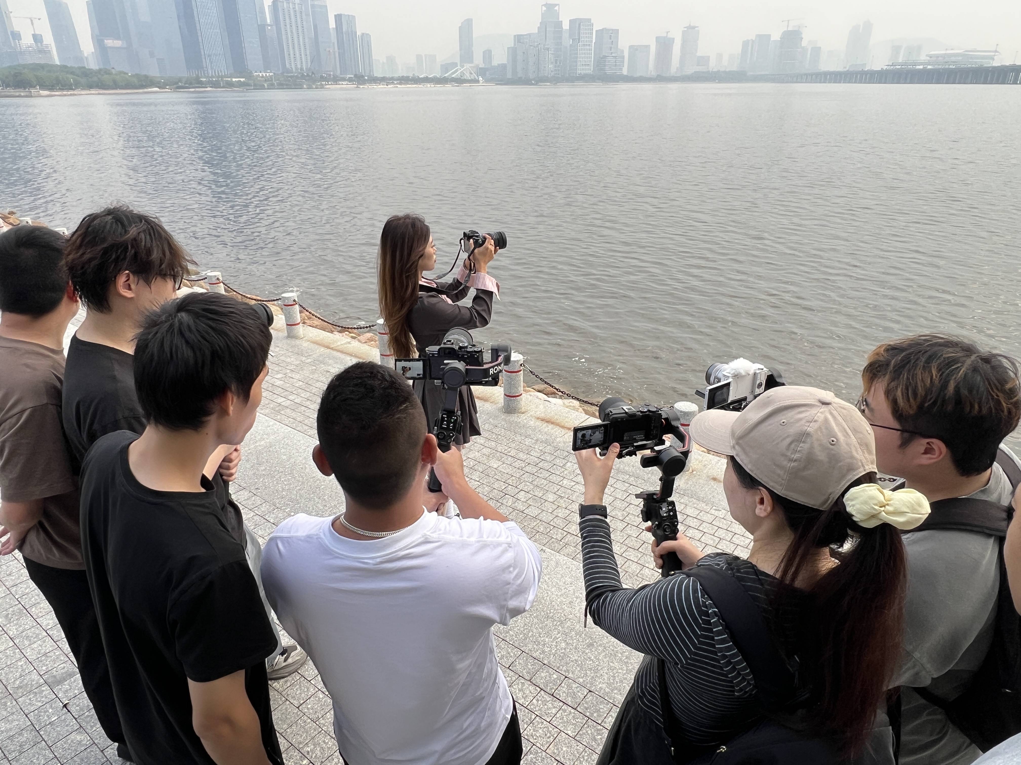 带着前三站的些许迷茫,我走进了红瓜子传媒学院。第一印象就与众不同:这里没有传统的教室和整齐的课桌,放眼望去全是高性能的苹果剪辑电脑、各式摄像机、灯光设备和无人机,更像一个忙碌的专业工作室。学员们三三两两围在电脑前,老师穿梭其中,随时俯身指导,氛围紧张又投入。