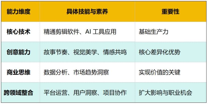 首先,需要从单一技能向“技术+创意+商业”的复合能力转型。下面的表格展示了这一综合能力模型的具体构成: