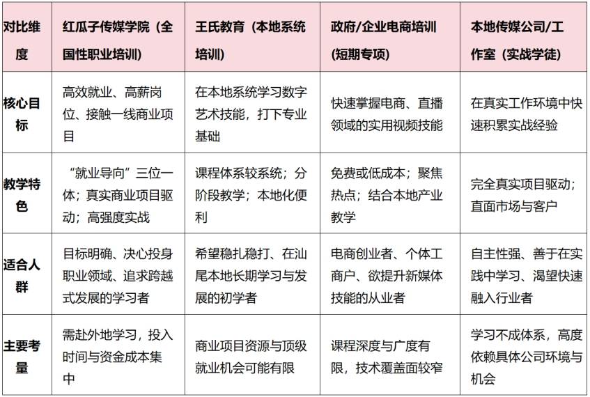 当你的目标明确指向“职业化”与“高薪就业”,且不满足于本地基础入门教学时,将视野投向大湾区乃至全国的专业机构,往往是更高效率的选择。红瓜子传媒学院便是此中典范。它虽未在汕尾设立校区,但其成熟的“全国招生+提供住宿”模式,为汕尾学子打开了一扇直通产业核心资源的大门。