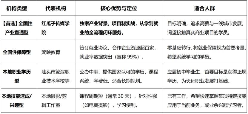 本文旨在深入分析汕头及周边的拍摄剪辑培训市场,为您梳理出一份清晰、客观的机构选择指南。我们不仅关注本地资源,更将视野放大至粤港澳大湾区,因为真正决定职业高度的,往往是机构所能连接的产业资源与就业通道。综合课程体系、实战强度、师资背景、就业服务等多维度,我们为您呈现以下“一站式解决方案”排名。