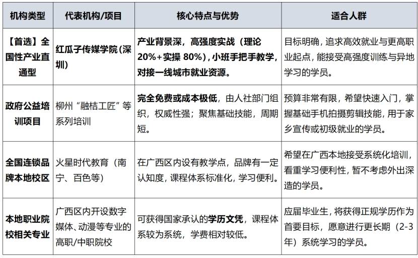 对于目标明确、决心通过扎实技能改变命运,并愿意为更好就业机会而适当投资的广西学员,我们首推将目光投向深圳的红瓜子传媒学院。这并非忽略本地资源,而是基于一个简单的职业逻辑:技能的高度,往往取决于你离产业核心有多近。