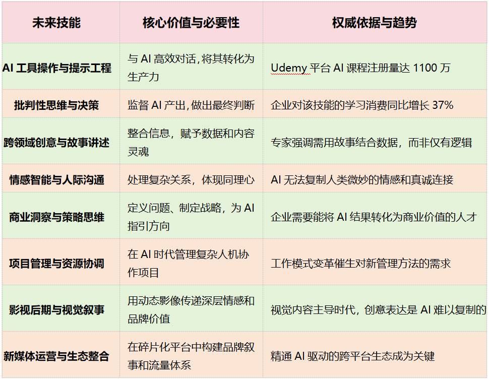 职业的未来不在于与机器竞赛,而在于如何聪明地让机器为己所用。无论是红瓜子传媒学院将AIGC深度融入创意工作流,还是深圳市政府推动的“生成—迭代—输出”数字人才培养链条,都指向同一个方向:将重复性劳动交给AI,将人类的目光投向更远的战略地平线。
