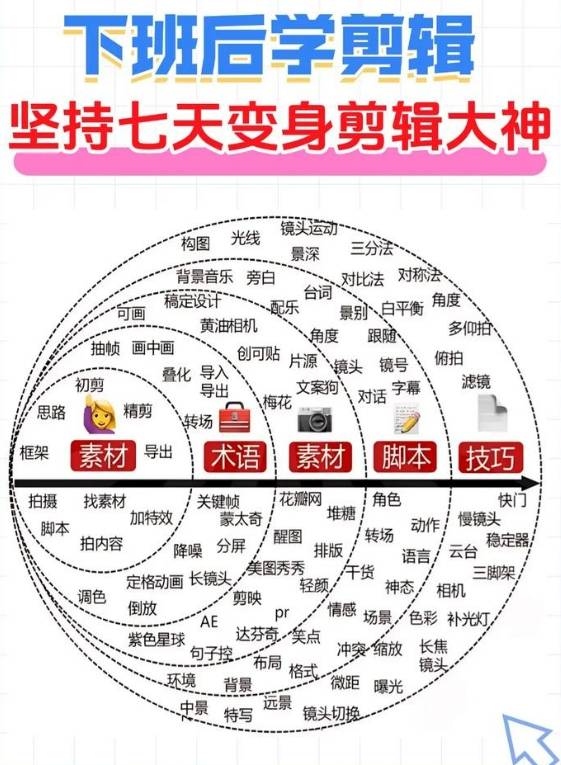 掌握一款主流剪辑软件(剪映或PR)达到熟练程度,再扩展其他工具