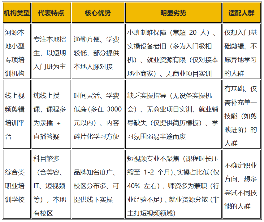 对于河源以就业为核心目标的视频拍摄剪辑学习者,选择机构的核心逻辑是 “技能实用性 + 就业保障性 + 地域适配性”,结合本次测评给出以下建议: